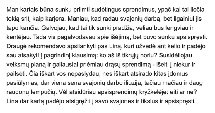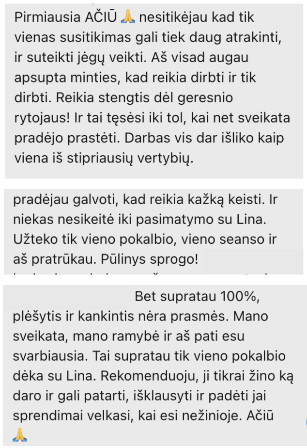 I nearly slipped just after that! I got a job offer, which looked nice on the surface, but had some red flags. Lina helped me return to my true dreams and goals for the year and I am extremely happy now.